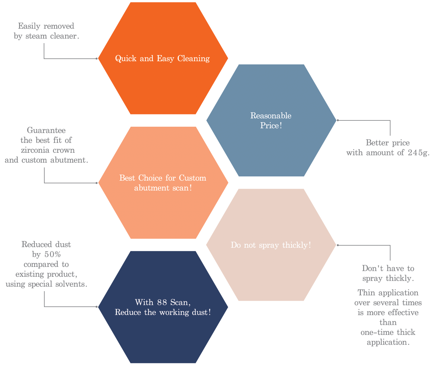 Enhance the precision of your dental scans with our specialized dental scan spray. Our advanced formula ensures optimal scanning accuracy by creating a fine, uniform coating on the dental surface. This easy-to-use spray improves the clarity of digital impressions, resulting in more accurate and detailed scans for superior diagnostic outcomes. Trust in our dental scan spray to streamline your digital workflow and elevate the quality of your dental imaging. Achieve unparalleled precision in every scan with our reliable and efficient solution.