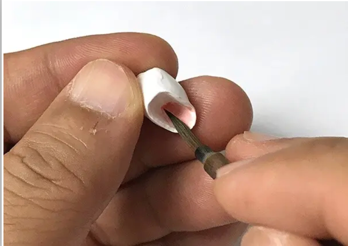 Brush inside of crown. A small amount is enough to achieve opaque effect.